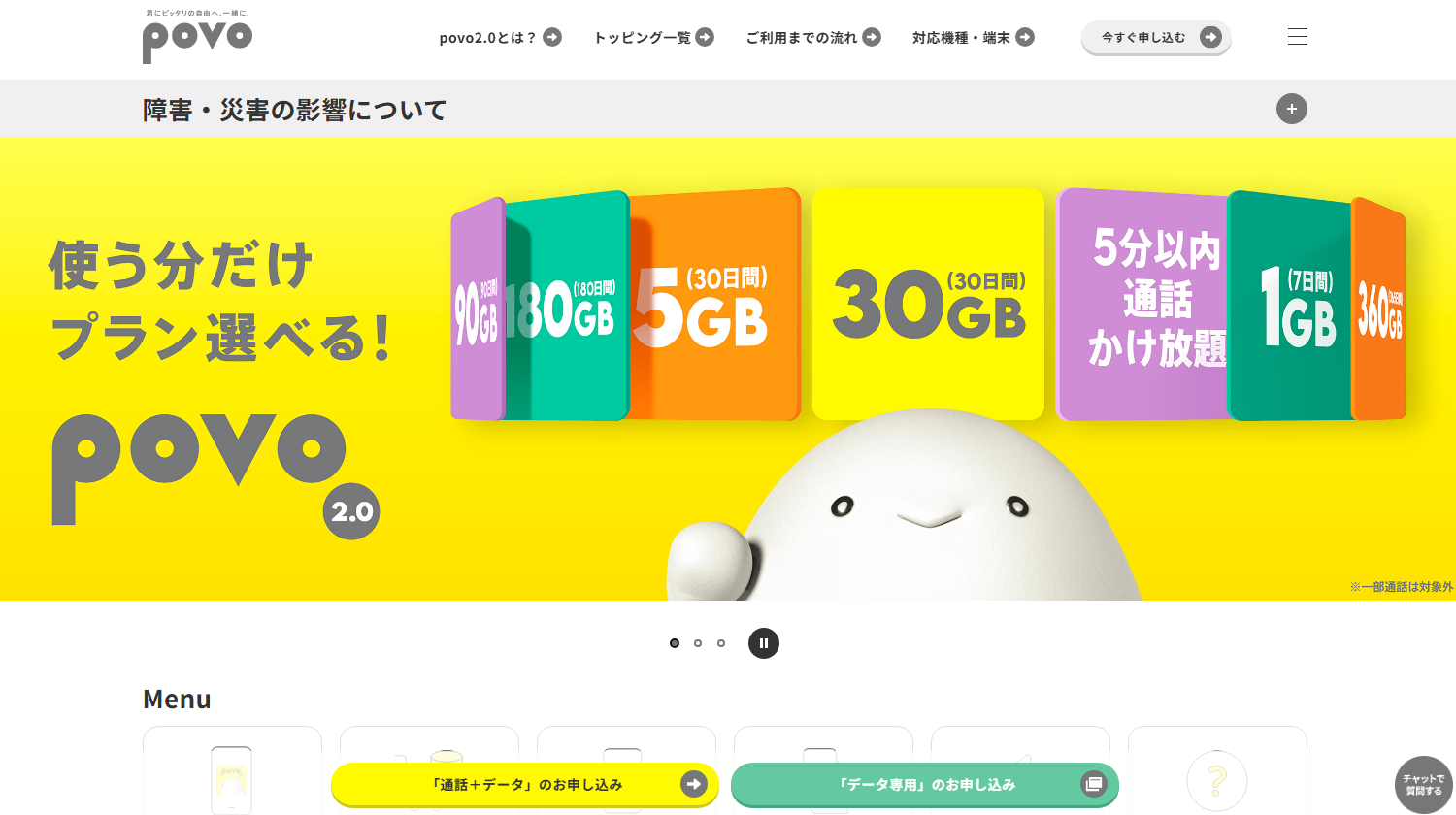 第4位:povo|使い方次第で最も無駄がない自由型プラン