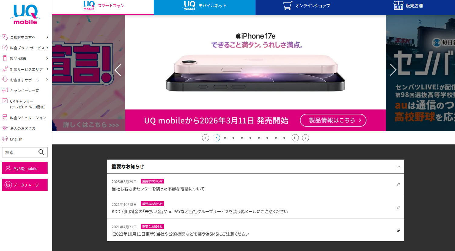 第5位:UQモバイル|サポート重視なら安心の選択肢
